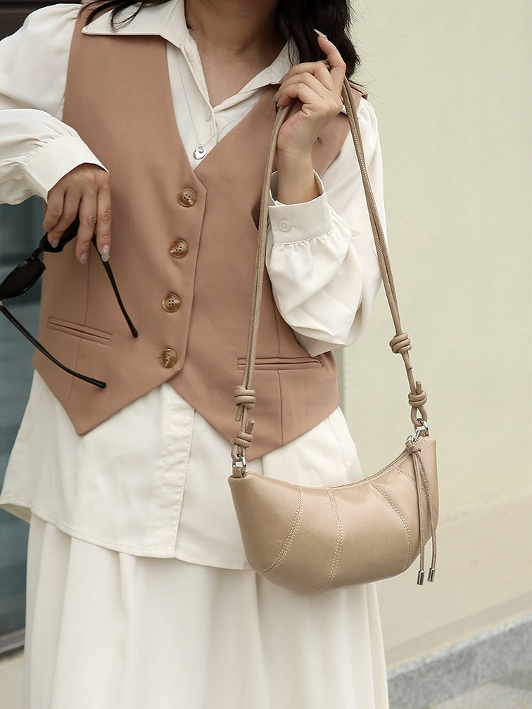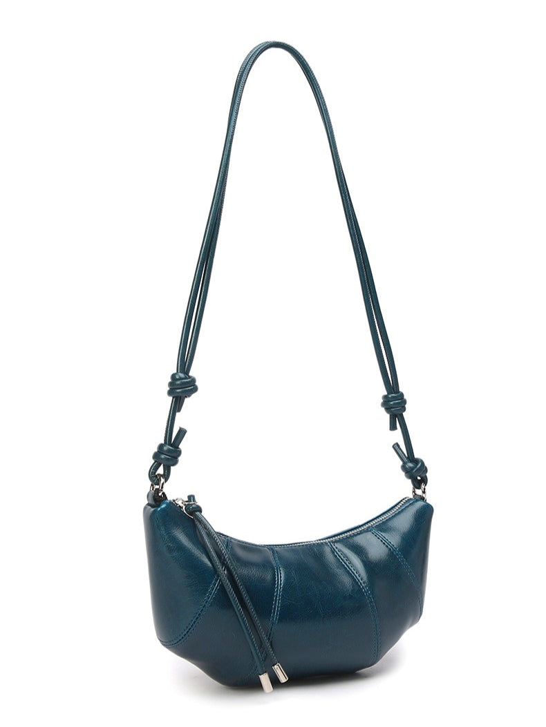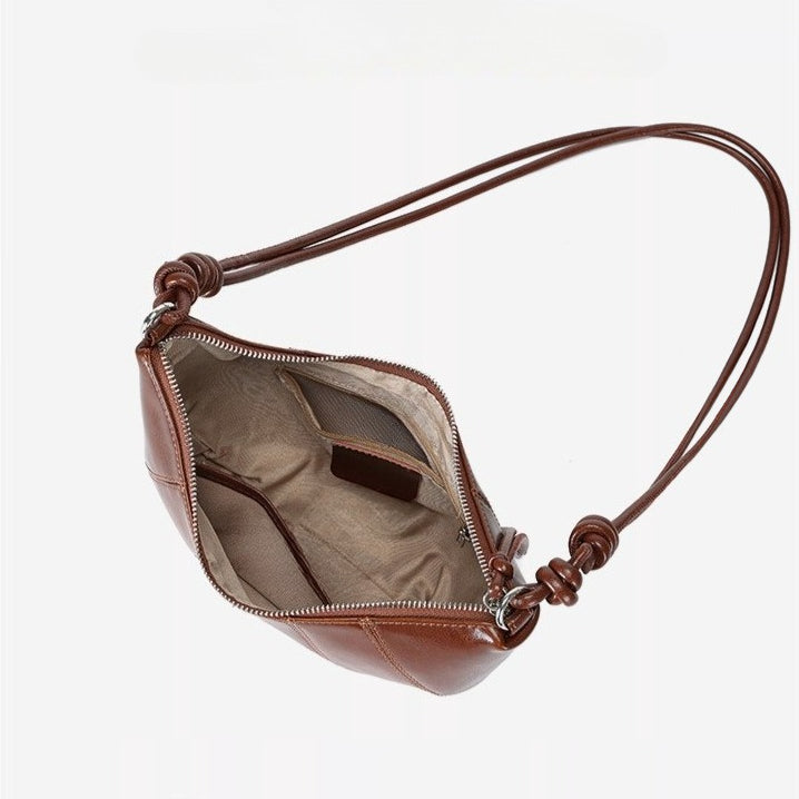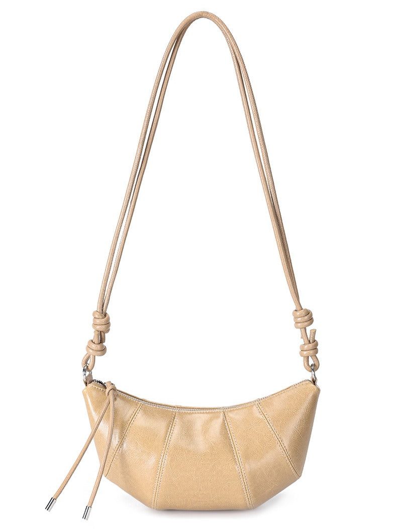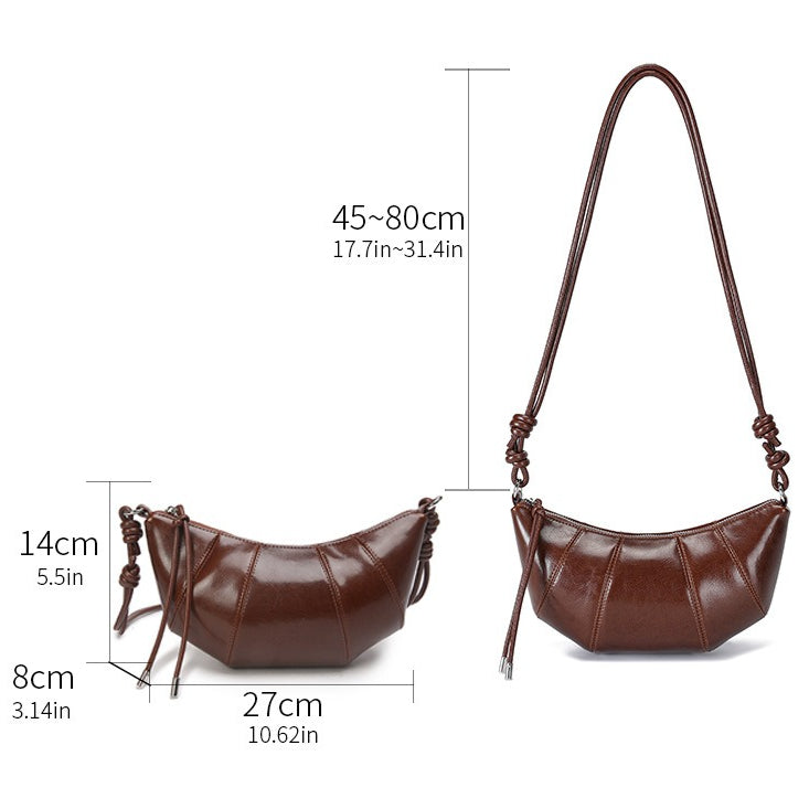 حقيبة أرتيزان كرواسون جلد طبيعي | حقيبة هوبو بسيطة مع عقدة ولوحات