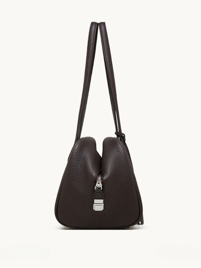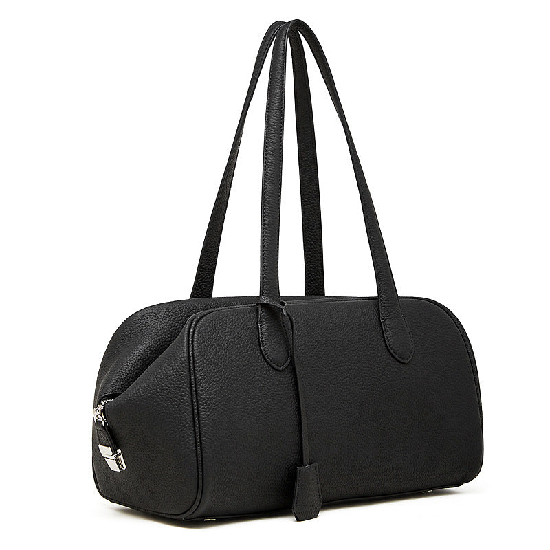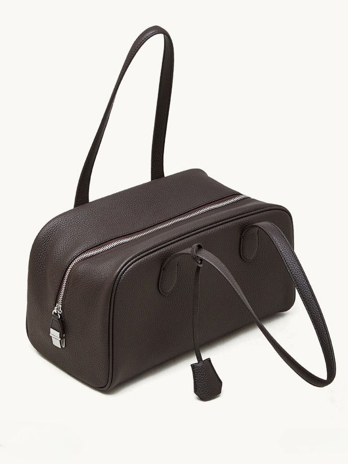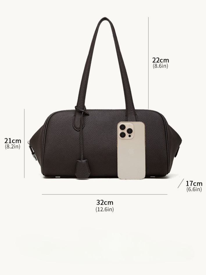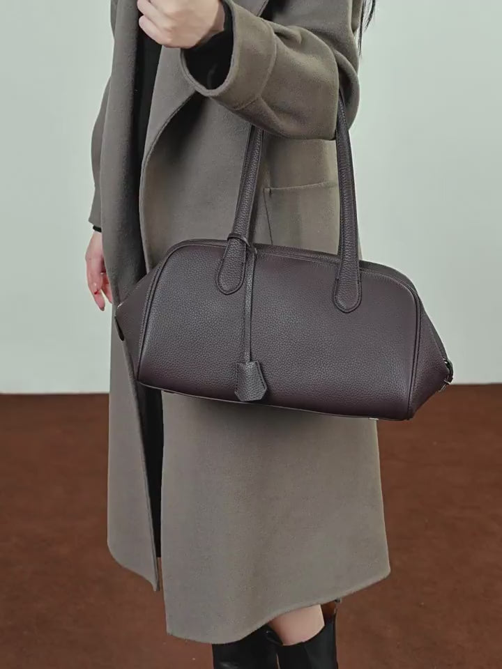حقيبة مودرن إيست-ويست جلد طبيعي | حقيبة بولينغ بسيطة من جلد الحصى