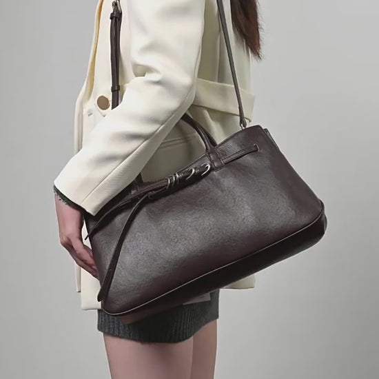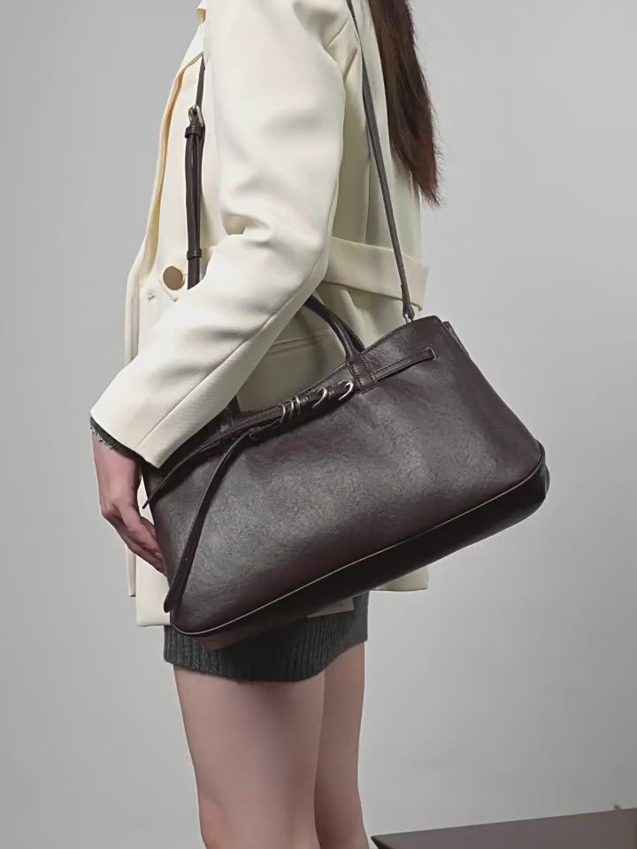Diese Retro-Echtleder-Umhängetasche mit Signature-Ring-Schnallenriemen ist eine stilvolle Tasche aus hochwertigem Vollnarben-Rindsleder, die natürliche Textur und langlebige Qualität zeigt. Sie verfügt über eine große, horizontale quadratische Form mit mittlerer Steifigkeit – geräumig genug für tägliche Essentials oder Pendelbedürfnisse. Ausgestattet mit einem sicheren Reißverschluss und akzentuiert durch ein minimalistisches Schnallendetail, das ihren Retro-Charme unterstreicht, beinhaltet das polyestergefütterte Innere eine verschließbare Geheimtasche und eine Handytasche für organisierte Aufbewahrung. Diese vielseitige Tasche verbindet Nischendesign mit Praktikabilität, balanciert Retro-Ästhetik mit Alltagsfunktionalität und ist somit ein idealer Begleiter für Arbeit, Besorgungen oder legere Ausflüge.