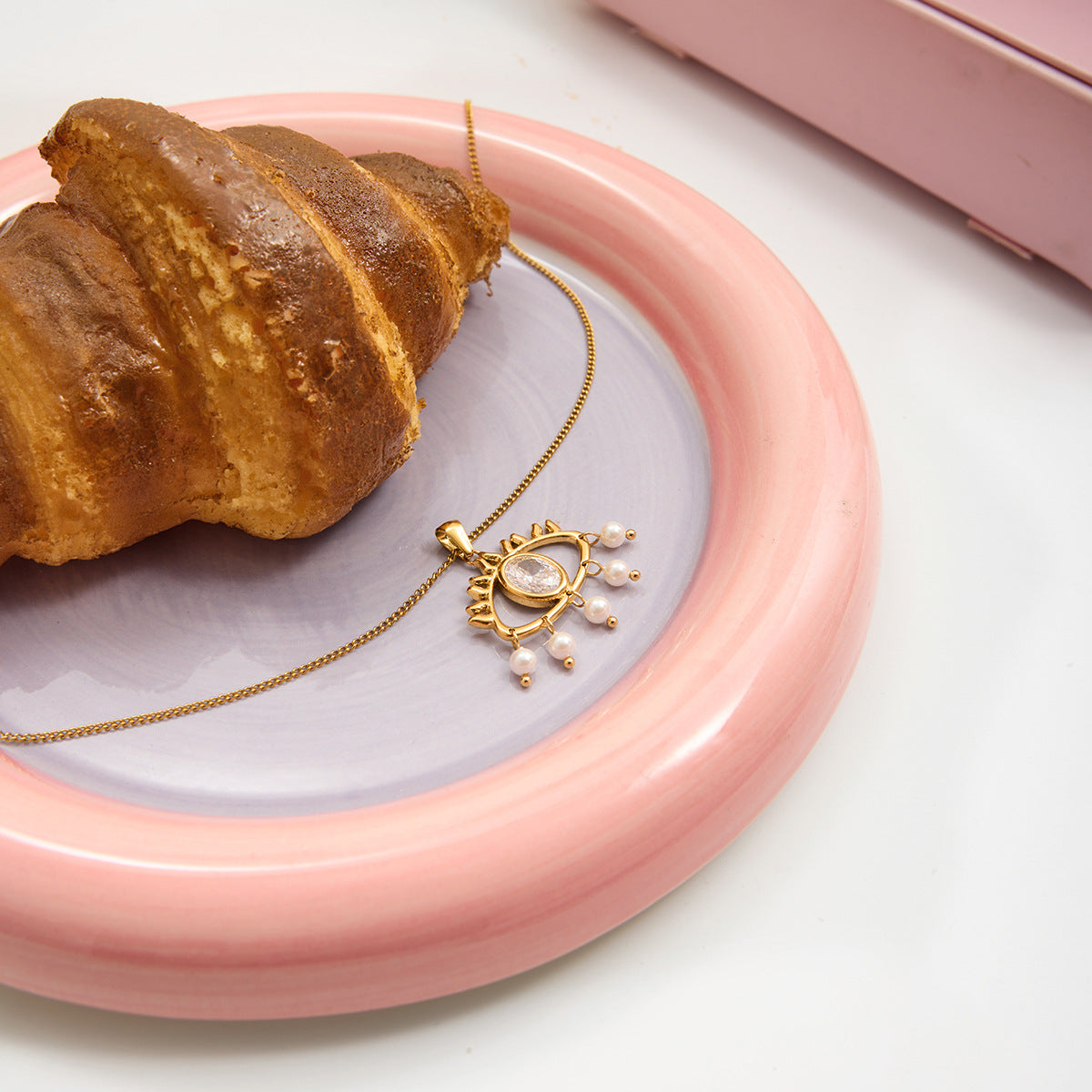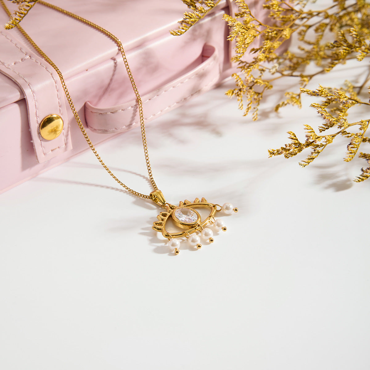 Vintage Halskette mit weißem Zirkon und Perlen, verziert mit dem bösen Blick