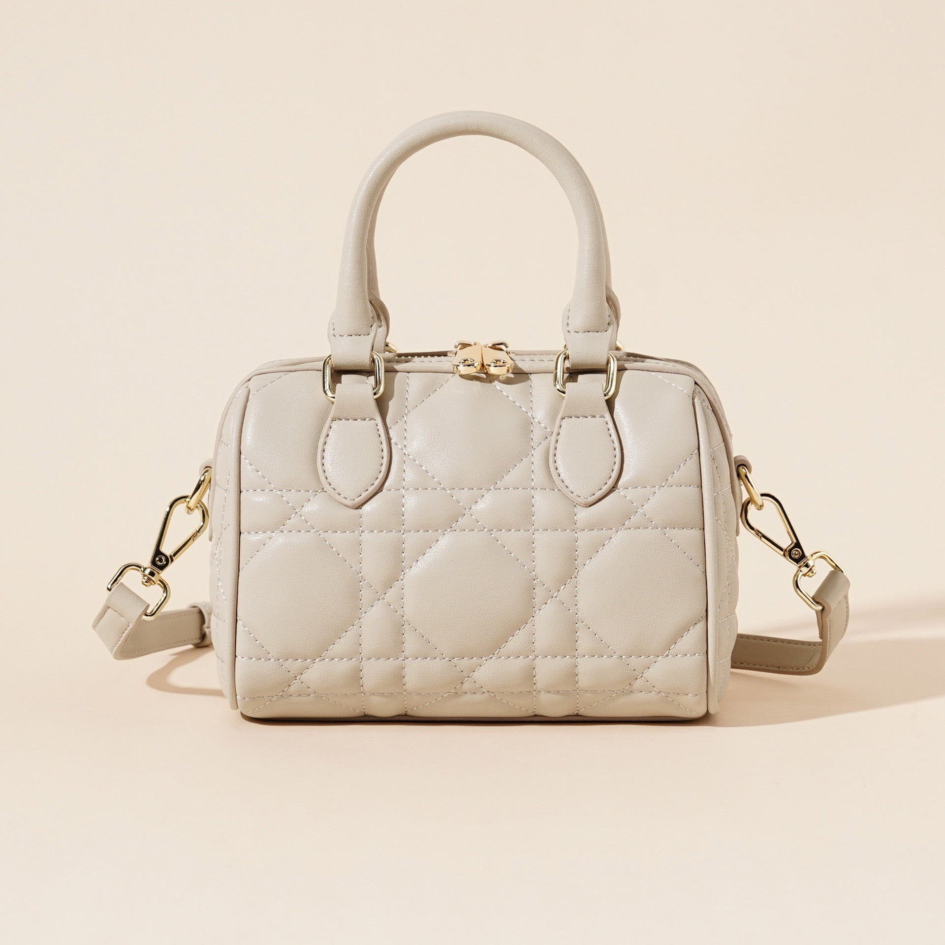 Hergestellt aus hochwertigem Rindsleder, besticht diese mittelgroße Genuine Leather Quilted Boston Bag durch ikonische Steppmuster, die klassische und trendige Elemente verbinden. Mit einer horizontalen quadratischen Form und mittlerer Härte ist sie sowohl langlebig als auch stilvoll. Der glatte Reißverschluss sorgt für Sicherheit, während das Polyesterfutter eine verschließbare Geheimtasche für kleine Essentials enthält. Perfekt für den täglichen Gebrauch, vereint sie Funktionalität mit zeitloser Eleganz.