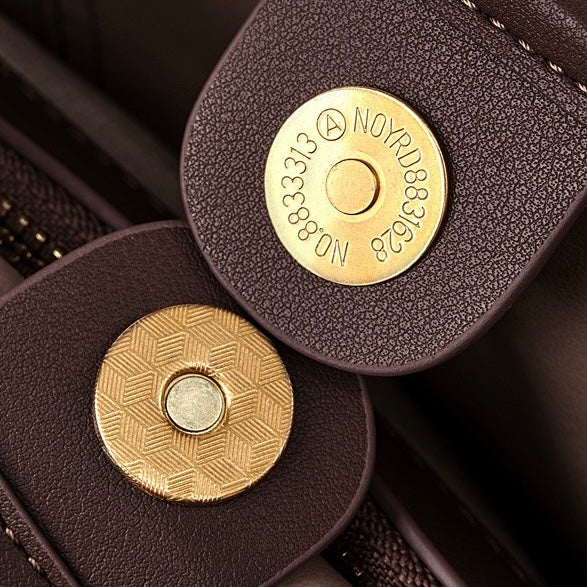 Este bolso tipo saco para mujer Amber de cuero de gamuza auténtica está elaborado con gamuza genuina de primera calidad (cuero escarchado) en un rico color café, que encarna un encanto minimalista urbano. Es un diseño cuadrado vertical de tamaño mediano con rigidez media, versátil para llevar al hombro, cruzado o en la mano. Equipado con un cierre magnético conveniente, el interior forrado en algodón y poliéster cuenta con un bolsillo secreto con cremallera y un compartimento para teléfono para un almacenamiento organizado. La textura suave de la gamuza añade un lujo sutil, mientras que las líneas limpias encajan perfectamente en estilos de vida urbanos. Perfecto para desplazamientos al trabajo o salidas diarias, este bolso multiusos equilibra la practicidad con una elegancia discreta, elevando tu look diario sin esfuerzo.