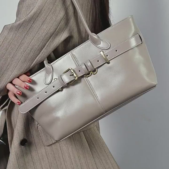 Bolso Tote con Cinturón de Cuero Genuino Ash Etéreo para Mujer