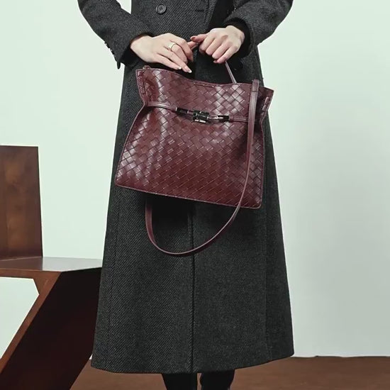 Elaborado con cuero genuino premium, este bolso tote eleva el estilo diario con su intrincada textura tejida—refinado por costuras sutiles y un adorno de hebilla metálica pulida para un encanto tranquilo y atemporal. De tamaño mediano (con una estructura medianamente rígida), logra el equilibrio perfecto: lo suficientemente espacioso para los esenciales diarios, lo suficientemente elegante para llevar sin esfuerzo.