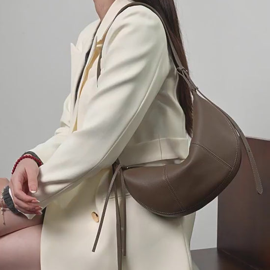 Bolso bandolera cruzado de cuero granuloso en forma de media luna para mujer