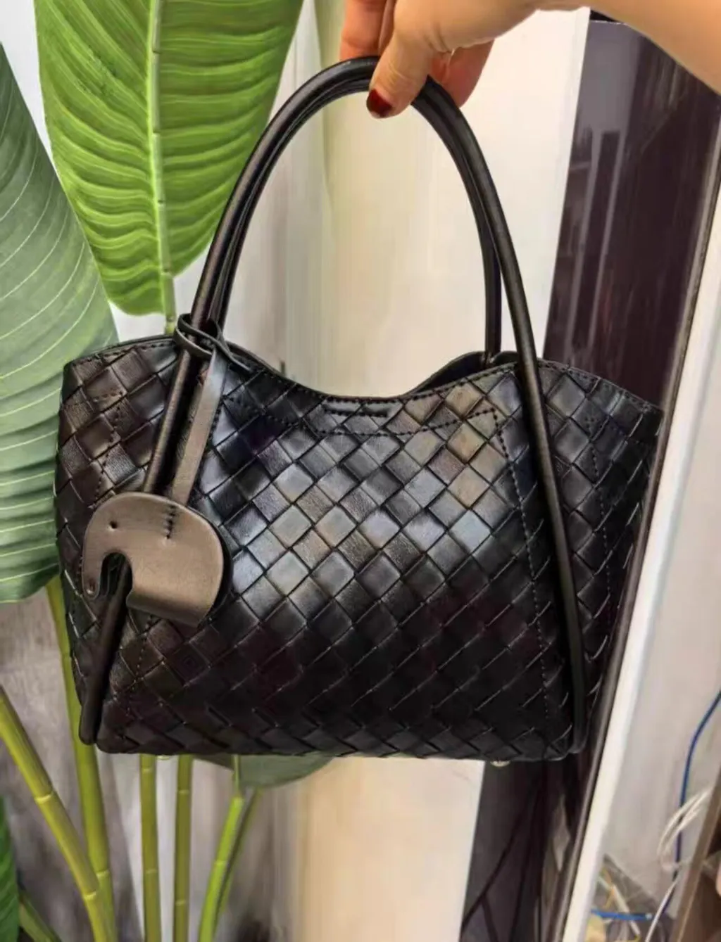 プレミアムレザー編み込み大容量多用途トートクロスボディバスケットバッグ