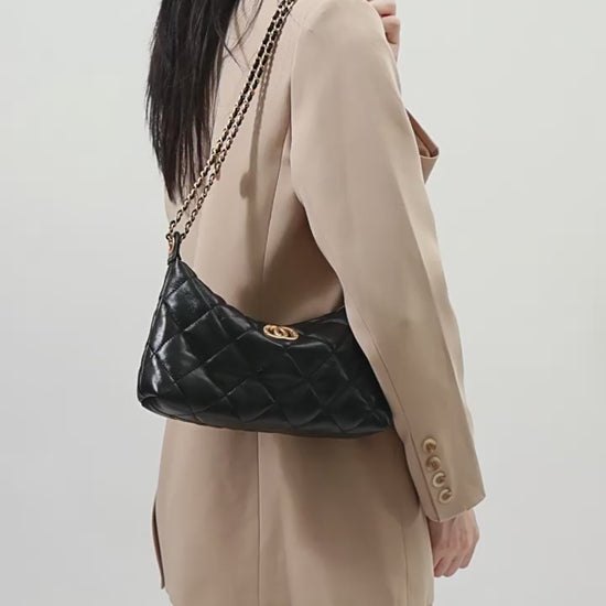 Noir Quilted Sheepskin Dual-Tone Chain Shoulder Bag