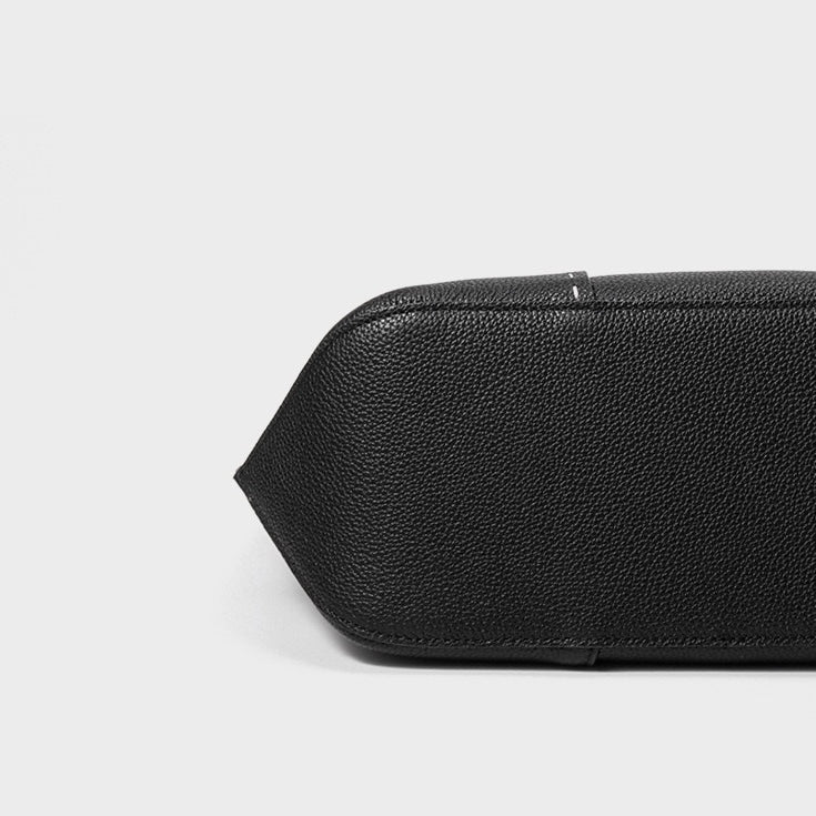 This Black Contrast-Stitch Textured Genuine Leather Tote Bag is crafted from premium full-grain cowhide, featuring neat stitching that elevates its sleek look. Designed in a horizontal square shape with medium stiffness, it maintains a structured silhouette while offering ample space for daily essentials. It opens via a smooth zipper for secure storage, and the polyester lining includes a zippered secret pocket to keep small items organized. Perfect for daily styling, this bag blends high-quality leather, practicality and timeless black charm—ideal for seamless matching with any outfit in your everyday routine.