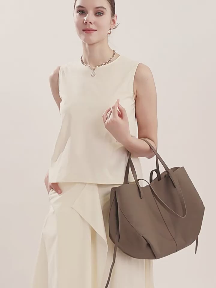 Embrace urban minimalism with this Elegant Genuine Pebbled Leather Tote Bag with Pouch. Crafted from premium genuine leather featuring a refined pebbled texture, it exudes understated sophistication. Designed for versatile wear, it can be carried by hand, slung over the shoulder, or styled as a crossbody bag, while the included pouch adds extra convenience for organizing essentials, making it a perfect companion for city living.