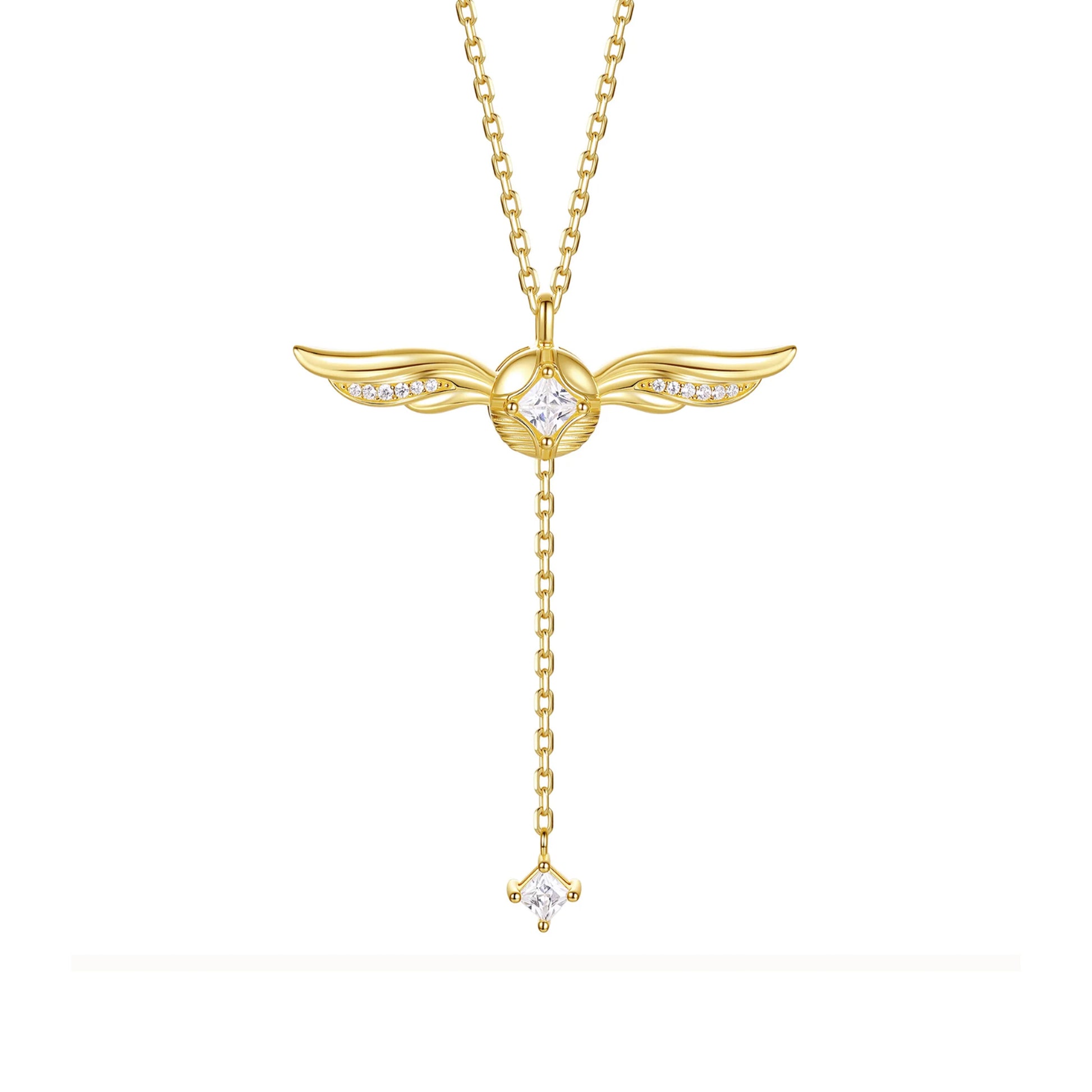 Elevate your style with the Golden Winged Sparkle Lariat Necklace—a captivating blend of whimsical charm and timeless elegance. Inspired by the grace of celestial wings and the allure of shimmering light, this necklace features intricately detailed golden wings adorned with glistening cubic zirconia, centered by a brilliant solitaire stone. A delicate Y-shaped lariat chain cascades below, finishing with a dainty drop charm that adds movement and depth to every wear.