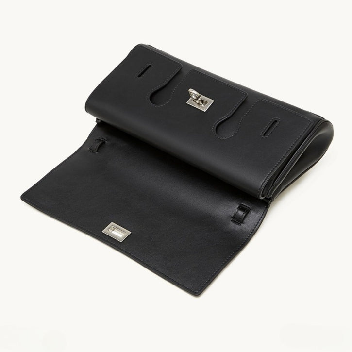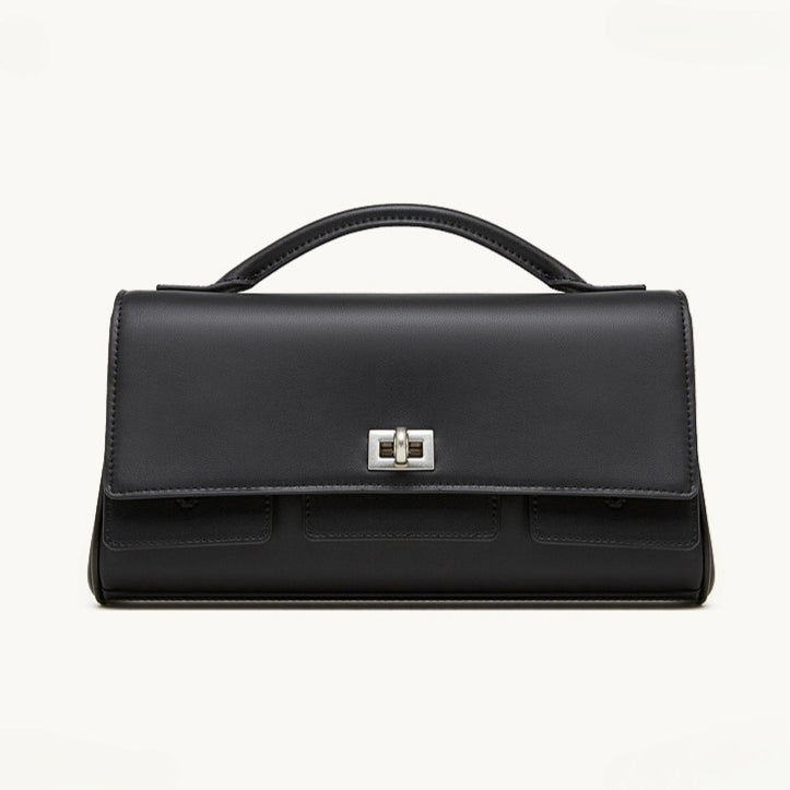 The Linear Turn-Lock Genuine Leather Bag | Minimalist East-West Handbag