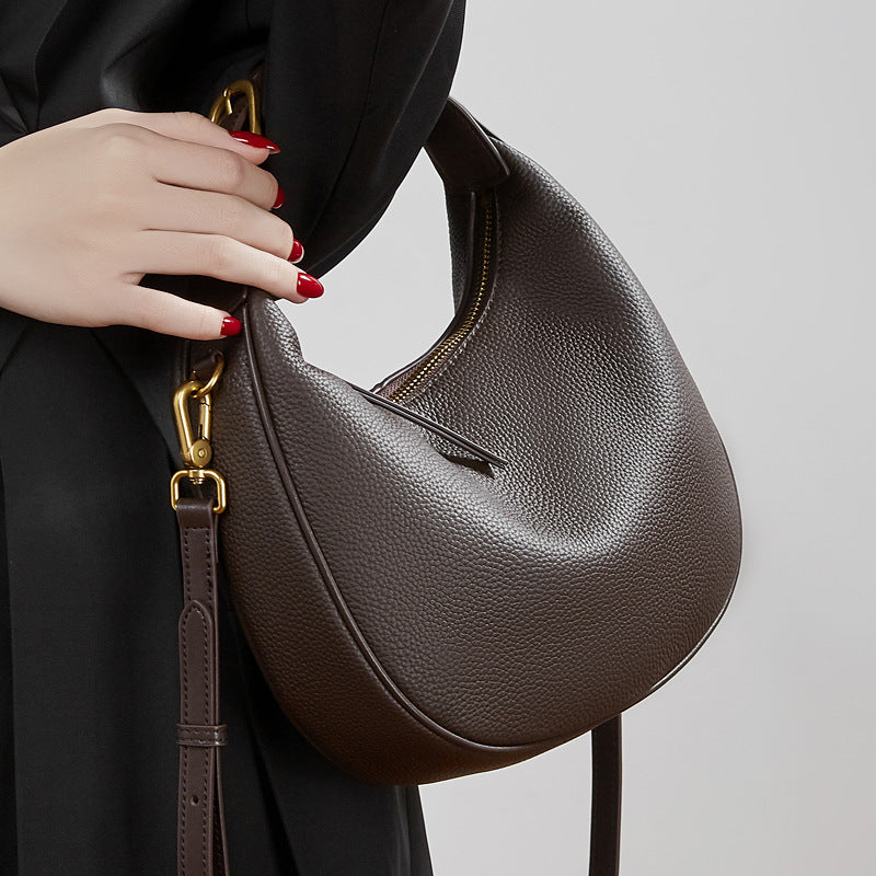 Modern Half-Moon Genuine Leather Bag - Versatile 2-Way Carry Pebbled Hobo