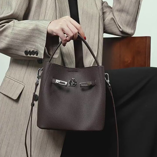 Women's Luxury Genuine Leather Basket Bucket Bag
