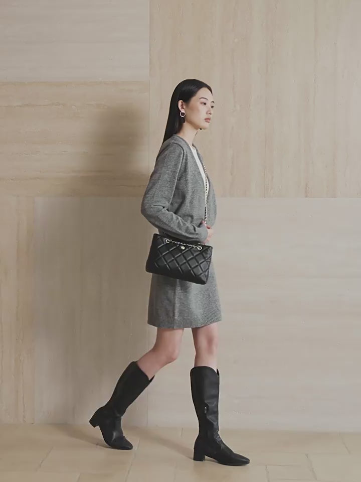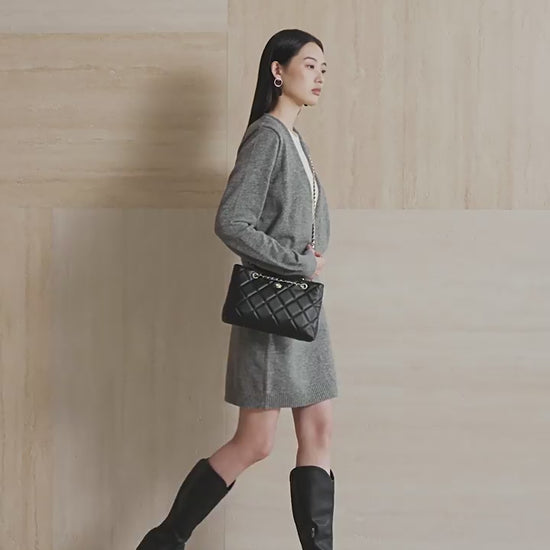Women's Quilted Genuine Leather Chain Shoulder Bag