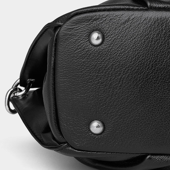 This Women's Ruched Genuine Leather Large Tote Hobo Bag, available in black and dark brown, embodies urban minimalism with its sleek dumpling shape. Crafted from premium full-grain leather with neat stitching, it offers ample capacity for daily essentials. Featuring a smooth zipper closure, the cotton-polyester lined interior includes a zippered secret pocket for secure storage. With medium stiffness for structure and practicality, it’s the perfect blend of style and functionality for everyday urban looks.