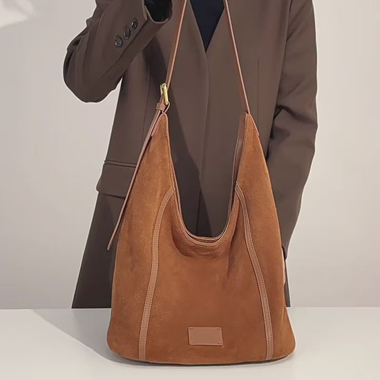 Women's Suede Structured Hobo Bag with Contrast Stitching